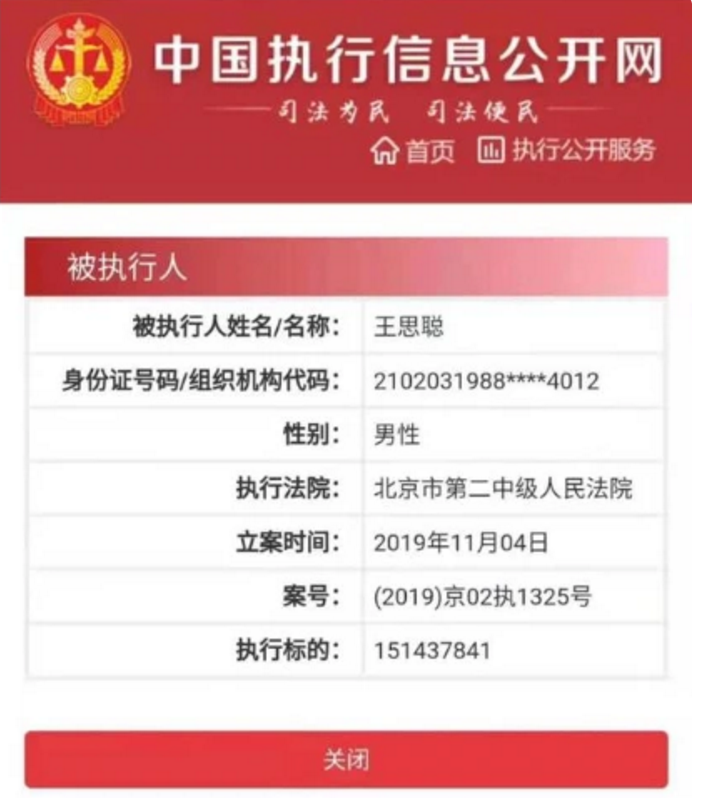 不过这次执行标的只有28万,对于王思聪来说不算什么事,不过近年来王思聪每次出场都是债务缠身,王思聪欠债还得从2019年10月说起,当时王思聪旗下的北京普思投资有限公司,股权遭到了法院的冻结,事件引发了很多人的关注。