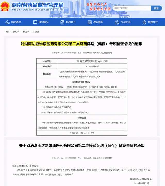 2019年12月,根据达嘉医药申请,湖南省药监局依法取消了其第二类疫苗配送(储存)备案事项。不过,招股书不仅没有提及上述飞行检查和备案取消事项,甚至没提到公司曾具有第二类疫苗配送(储存)备案。