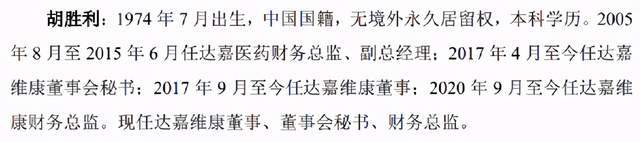 还有一个案例可能牵涉达嘉维康的现任董秘、财务总监胡胜利,其曾于2005年8月至2015年6月担任子公司达嘉医药财务总监,并曾作为一起刑事案件的证人。