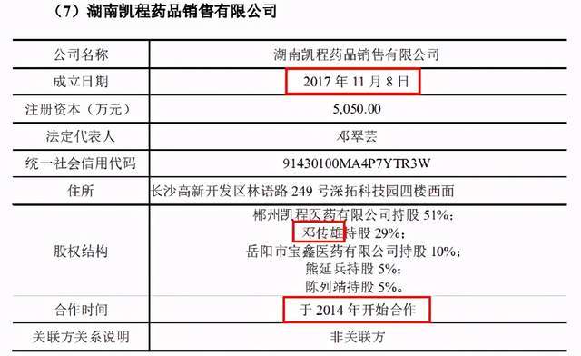 据招股书披露,湖南凯程药品销售有限公司(以下简称“湖南凯程”)是达嘉维康商业调拨业务的主要客户,成立于2017年11月,却与公司自2014年就开始合作。