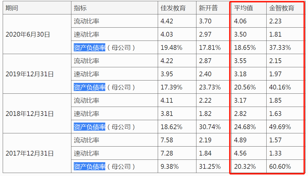 2017-2020年上半年,金智教育的资产负债率分别为60.60%、49.69%、40.16%和37.33%,而同行业可比上市公司资产负债率均值分别为20.32%、24.68%、20.56%和18.65%。金智教育的资产负债率虽然有所下滑,但是仍然远高于同行业可比上市公司。