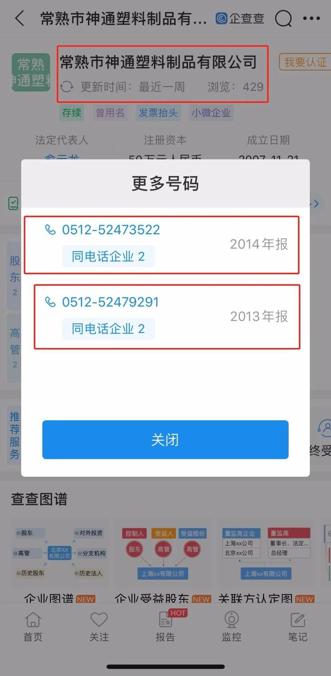 据企查查工商信息显示,搏益医疗工商注册资料中留下的联系电话为0512-52473522,而同样在工商资料中采用过这一联系电话的还有一家名为常熟市神通塑料制品有限公司的企业(下称“神通塑料”),在神通塑料2014年向工商系统申报年检时,其申报的联系方式则正好为0512-52473522。