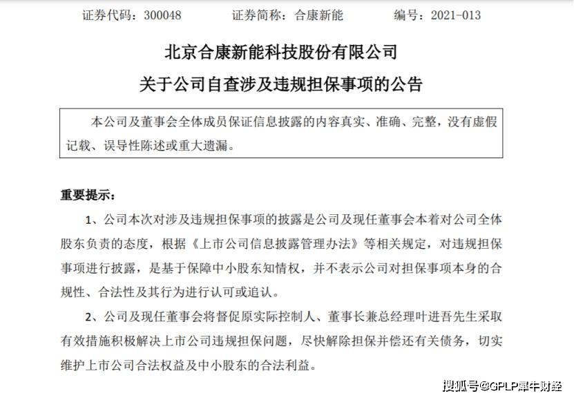 合康新能违规担保收监管函 剩未偿还违规担保679万元