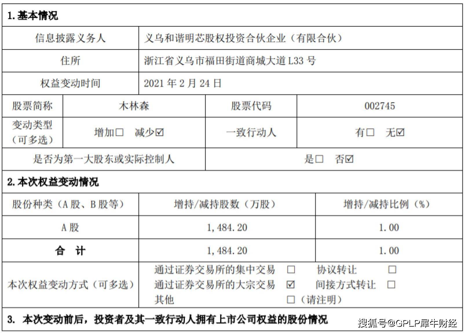 值得注意的是,2021年2月24日,和谐明芯刚刚以大宗交易方式合计减持木林森股份1484.20万股,减持股份比例达1%。此次减持后,和谐明芯持股比例变为6.18%。