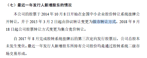 据了解,创尔生物在招股说明书描述,其自2017年8月完成股转系统挂牌后的第三次定向发行股票后,总股本未发生变化。同时,最近一年公司新增股东所持有公司股份均是通过股转系统二级市场交易形成。