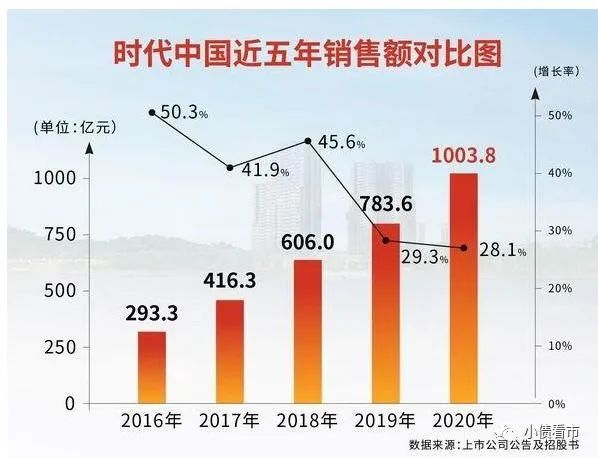 三年后,时代地产顺利敲开资本市场大门,登陆香港联交所,同年销售额突破百亿大关。