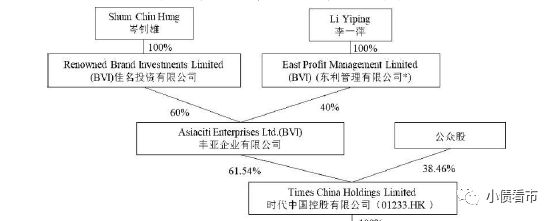 从股权结构上看,时代中国控股的控股股东为丰亚企业,持股比例为61.54%,公司实际控制人为岑钊雄、李一萍夫妇。