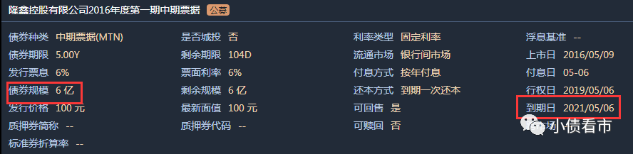 《小债看市》统计,目前隆鑫控股仅存续“16隆鑫MTN001”这一只债券,当前余额6亿元,将于今年5月6日到期。