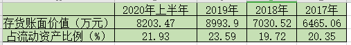 除了应收账款外,紫光照明的存货数额同样很高。2017年-2020年上半年,紫光照明的存货账面价值分别为6465.06万元、7030.52万元、8993.90万元和8203.47万元,占当期流动资产的比例分别为21.93%、23.59%、19.72%和20.35%。