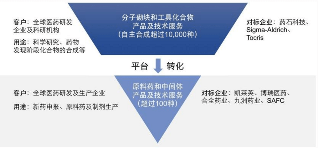 公开资料显示,皓元医药是一家专注于小分子药物研发服务与产业化应用的平台型高新技术企业,主要业务包括小分子药物发现领域的分子砌块和工具化合物的研发,以及小分子药物原料药、中间体的工艺开发和生产技术改进,为全球医药企业和科研机构提供从药物发现到原料药和医药中间体的规模化生产的相关产品和技术服务。