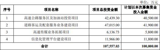 粤运交通原拟在深交所中小板上市,发行的A股总数将不超过8887.20万股。A股发行项下的A股总数将不超过A股发行上市后本公司总股本的10%;拟募集资金10.00亿元,分别用于高速公路服务区及加油站投资项目、道路客运及配套服务业务建设项目、高速传媒业务拓展项目、信息化管理平台建设项目。