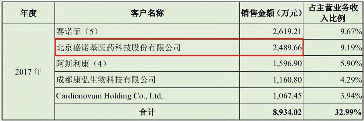 据招股书,2017年,北京盛诺基医药科技股份有限公司(下称“北京盛诺基”)是诺思格的第二大客户,当年度双方的交易金额为2,489.66万元。诺思格对北京盛诺基的销售金额合并了北京盛诺基的全资子公司北京珅奥基医药科技有限公司。