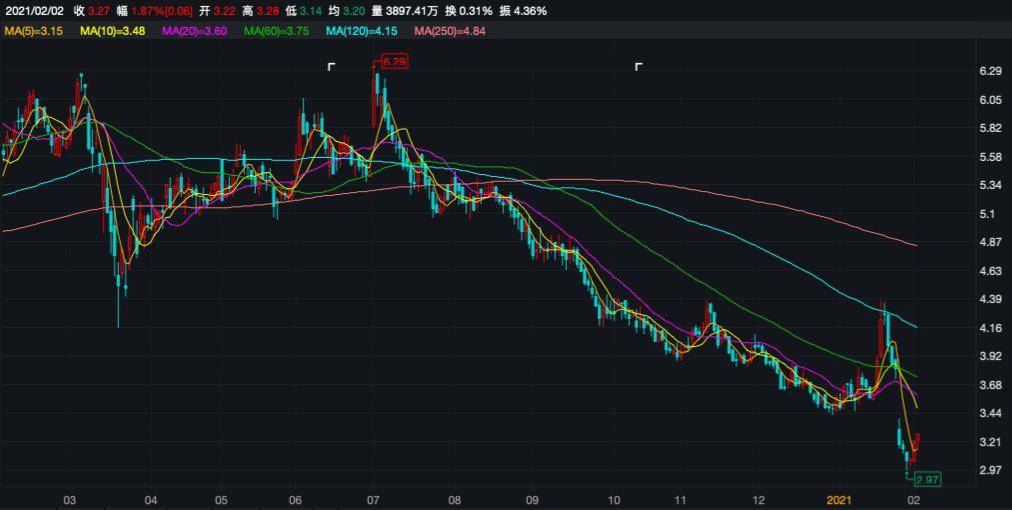 截至2021年2月2日,中国金茂收于3.27港元/股,7个月时间内该公司总市值缩水近390亿港元。