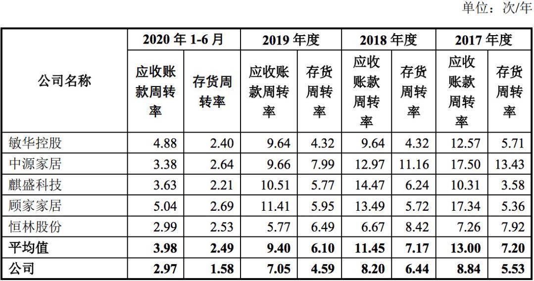 然而,就招股书披露的信息来看,近年来,匠心家居的生产经营并未取得较为理想的成绩。虽然2017年—2019年业绩逐年稳增,但时至2020年上半年,或是受到年初疫情冲击,该公司营收出现下滑。并且,相较于同行,其应收账款和存货的周转率也较低。再加上客户过于依赖欧美市场,匠心家居恐难扛巨头纷纷入局、不断加剧的行业内竞争。