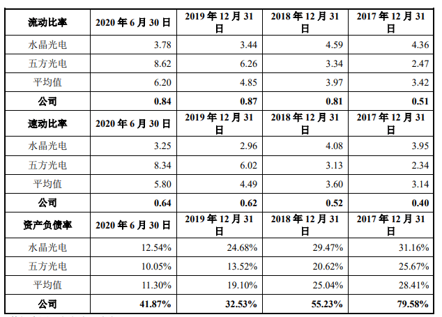2017年至2020年上半年各期末,美迪凯的资产负债率分别为79.58%、55.23%、32.53%和41.87%,流动比率分别为0.51、0.81、0.87和0.84,速动比率分别为0.40、0.52、0.62和0.64。
