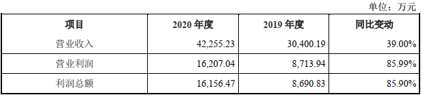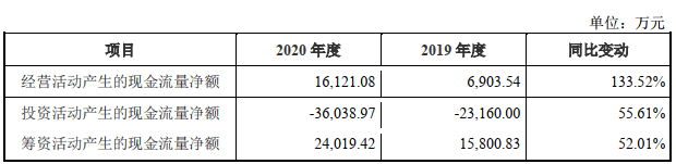 2020年度,美迪凯实现营业收入4.23亿元,同比增长39.00%;实现归属于母公司股东的净利润1.44亿元,同比增长86.46%;实现扣除非经常性损益后归属于母公司股东的净利润1.27亿元,同比增长92.68%;经营活动产生的现金流量净额1.61亿元,同比增长133.52%。