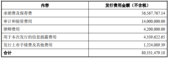 美迪凯本次上市发行费用为8033.15万元,其中保荐机构中信证券股份有限公司获得承销保荐费用5656.78万元,天健会计师事务所(特殊普通合伙)获得审计验资费用1400.00万元,国浩律师(上海)事务所获得律师费用420.00万元。