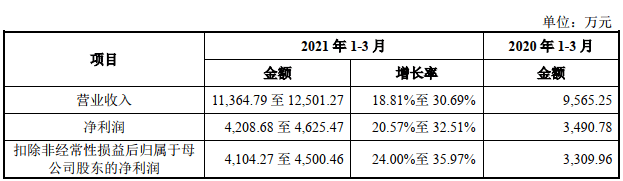 2021年1-3月,美迪凯预计实现营业收入1.14亿元至1.25亿元,同比增长18.81%至30.69%;预计实现净利润4208.68万元至4625.47万元,同比增长20.57%至32.51%;预计实现扣除非经常性损益后归属于母公司股东的净利润4104.27万元至4500.46万元,同比增长24.00%至35.97%。