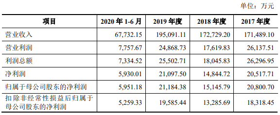 王力安防业绩波动,2018年净利下滑达27.19%。2017年-2019年及2020年1-6月,王力安防营业收入分别为17.15亿元、17.27亿元、19.51亿元、6.77亿元,归属于母公司股东的净利润分别为2.08亿元、1.51亿元、2.12亿元、0.60亿元。