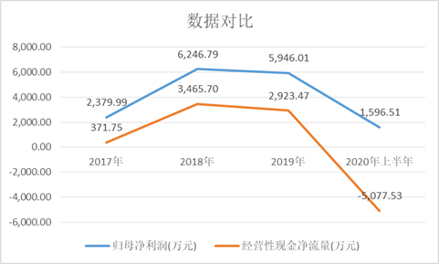 报告期内,智明达归母净利润分别为2379.99万元、6246.79万元、5946.01万元、1596.51万元(半年),合计为1.62亿元。而智明达经营性现金净流量分别为371.75万元、3465.7万元、2923.47万元、-5077.53万元,不但总数比归母净利润少了1.45亿元,而且每期都低于归母净利润。
