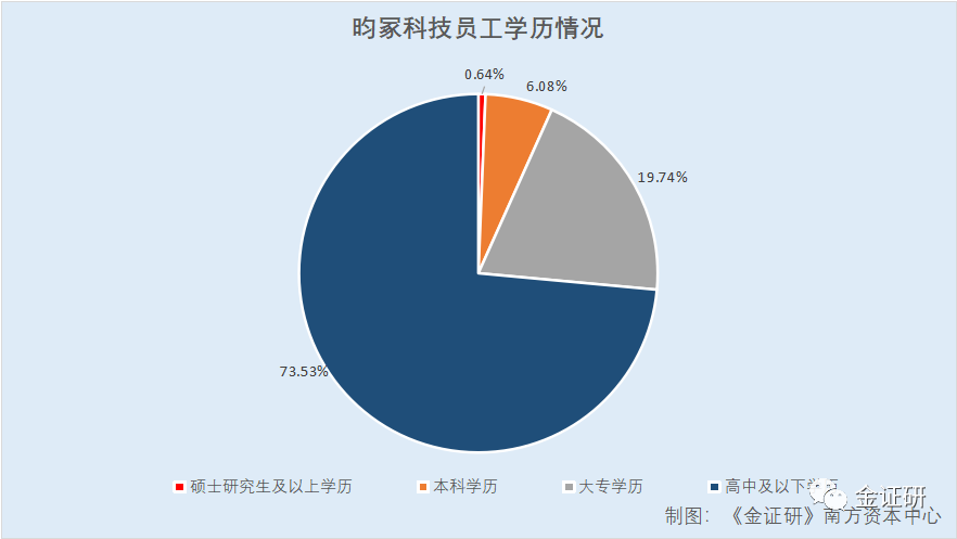 而且整体上看,昀冢科技超九成员工学历或“偏低”。