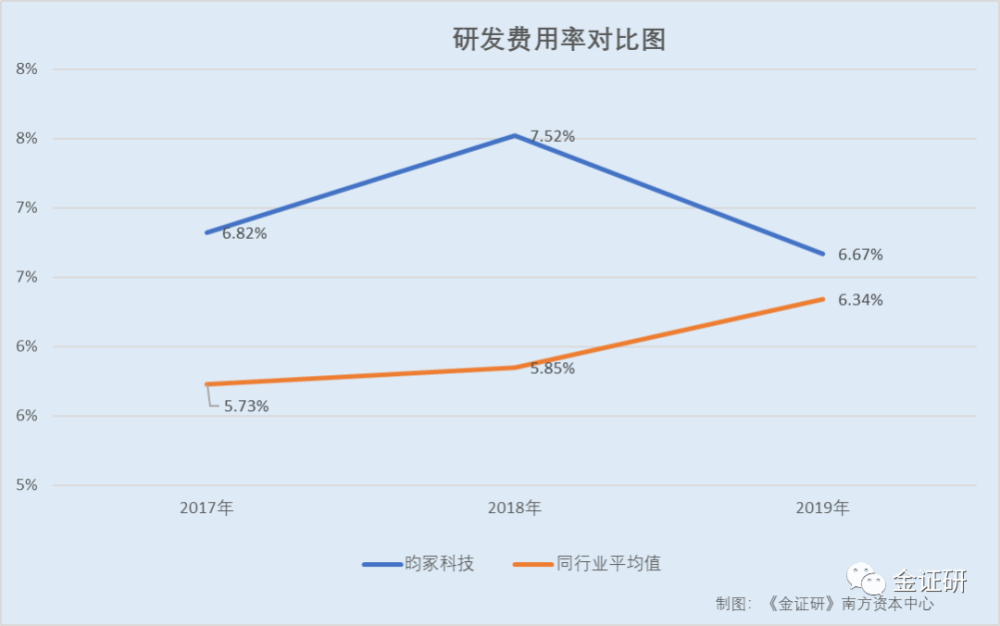 据招股书,2017-2019年及2020年1-6月,昀冢科技的研发费用率分别为6.82%、7.52%、6.67%、5.91%。
