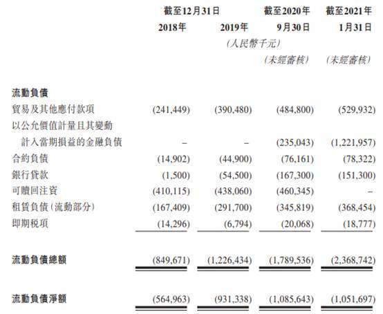 其中公司的流动负债总额分别为8.50亿元、12.26亿元和17.90亿元,流动负债净额分别为5.65亿元、9.31亿元、10.86亿元。