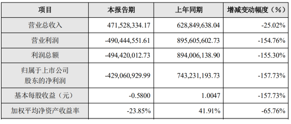 2021年2月27日,远望谷发布的业绩快报显示,2020年该公司实现营业总收入4.72亿元,较上年同期下降 25.02%;归属于上市公司股东的净利润-4.29亿元,较上年同期下降 157.73%;基本每股收益-0.58 元,较上年同期下降 157.73%。