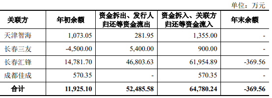 其中,致远装备与长春市汇锋汽车齿轮有限公司(下称“长春汇锋”)的资金拆借金额最大。长春汇锋为致远装备的实控人全资拥有,且为致远装备的控股股东,直接持有致远装备69.4%的股份。