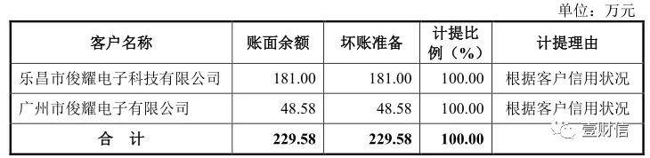 据招股书,芯碁微装对之前的大客户就存在账款收不回来的情形。在2019年12月31日和2020年6月30日,芯碁微装对2017年的第一大客户广州市俊耀电子有限公司、乐昌市俊耀电子科技有限公司进行了全额计提坏账准备,账面余额合计229.58万元。