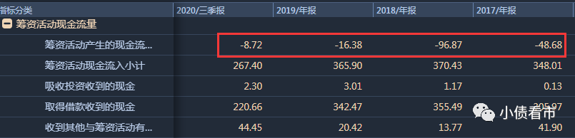 然而,近年来由于大量债务到期,重庆能源筹资性现金流净额持续净流出,2016年至今分别净流出15.65亿、48.68亿、96.87亿、16.38亿以及8.72亿元,说明外部融资渠道并不顺畅。