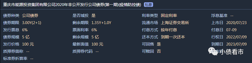 《小债看市》统计,目前重庆能源存续1只私募债,存续规模5亿元,将于2023年7月9日到期。