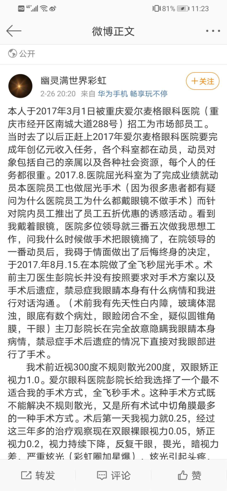 爱尔眼科又遭员工公开举报:手术后情况越变越糟糕