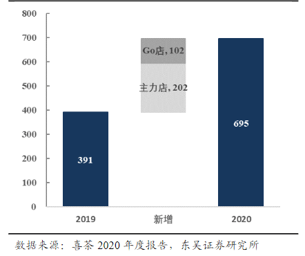 据喜茶2020年度报告显示,喜茶扩张的速度可谓“疯狂”,短短几年间已经在61个城市开出695家门店,仅在2019年至2020年就新增304家门店。根据公开信息显示,奈雪的茶2019到2020年之间,新增门店数180家,截至2021年2月,门店总数507家。