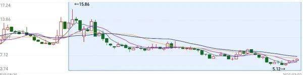 迈入2020年起,公司净利润就连跌不止,第一季度亏损超7000万元,第二季度亏损5.71亿元,第三季度亏损数字更是飙升至14.77亿元。股价自然也呈明显下滑态势,去年1月份尚能达到13.89元/股,经一年震荡下跌后,股价跌去约63%,截至2月26日,仅报收6.11元/股。
