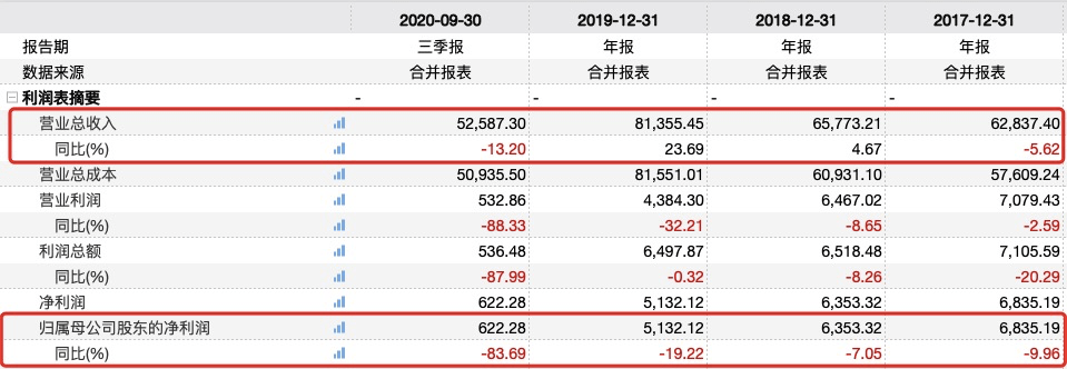 wind数据显示,2020年前三季度,庄园牧场营业收入5.3亿元,同比下滑13.2%,归母净利润622万元,同比下滑83.69%。