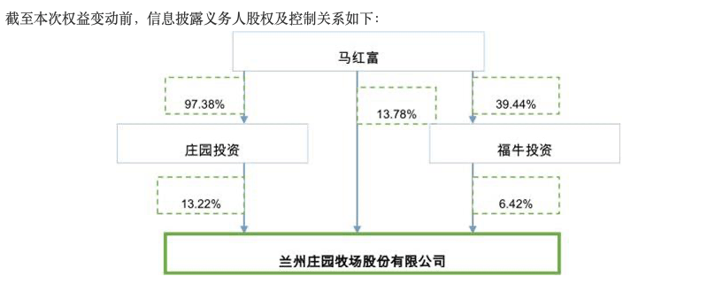 业绩连年下滑的兰州庄园牧场股份有限公司(以下简称“庄园牧场”)近日易主谋突围。日前,庄园牧场发布权益变动报告书,公司实控人马红富通过股份转让方式将其控制权转让给甘肃省农垦集团有限责任公司(以下简称:甘肃农垦集团),本次股份转让事项完毕后,甘肃农垦集团获得庄园牧场29.45%股权。