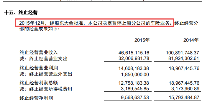 发现网跟踪历年年报数据发现,2011年-2014年史带财险车险业务为第一大险种,业务占比6成及以上,承保合计亏损3.35亿元。2015年史带财险第一大险种变更为企业财产保险,同期承保利润369万元,同时年报显示,2015年12月经股东大会批准,公司决定暂停上海分公司的车险业务。