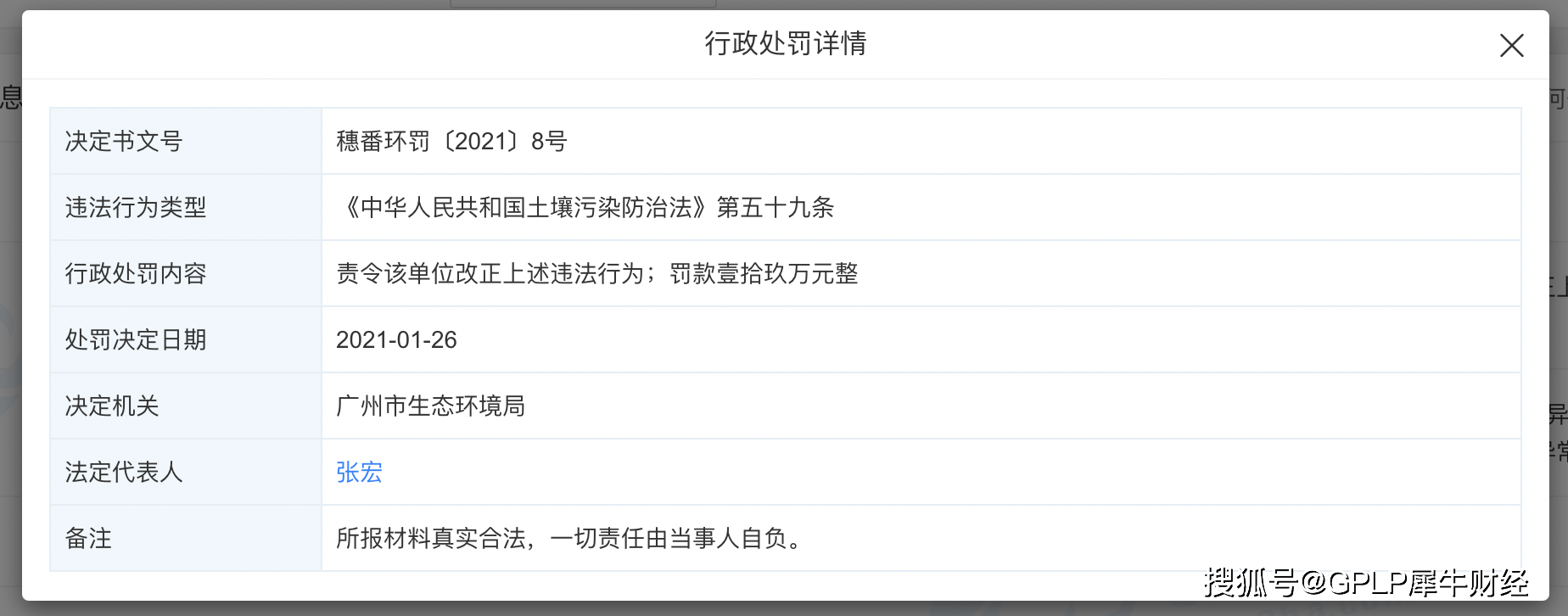 近日,广州创益房地产开发有限公司(下称“广州创益地产”)收到广州市生态环境局下发的行政处罚书,因其违反了土地污染防治法的相关规定,广州市生态环境局决定对其罚款19万元,处罚决定日期为1月26日。