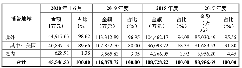 一、美国市场占比90%贸易风险较高 国内市场开拓不利收入萎缩