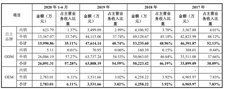 自主品牌的孱弱则是匠心家居另一个值得担忧的问题。目前,匠心家居与客户的合作模式主要包括 ODM 模式及自主品牌模式。在 ODM 模式下,产品以客户品牌销售;在自主品牌模式下,产品以公司自主品牌销售。