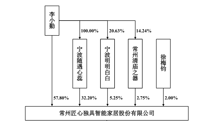 资料显示,匠心家居股权高度集中,实控人李小勤发行前实际能够控制公司股份比例达98%。按照其持股比例计算,匠心家居IPO前夕巨额分红中有近1.73亿元落入李小勤囊中,可谓是肥水不流外人田。
