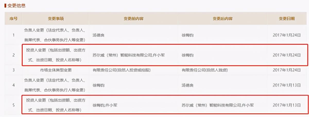 公开资料显示,苏尔威曾经是常州大正股东。据国家企业信用信息公示系统(下称“企信网”),2017年初常州大正的股权由徐梅钧与仵小军控制,2017年1月13日徐梅钧退出常州大正,同时苏尔威入股常州大正。但苏尔威在仅持股11天后即于2017年1月24日退出常州大正,同时仵小军也不再为常州大正股东,而徐梅钧重新持股并成为常州大正唯一股东。