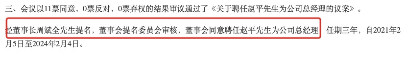 值得一提的是,此次减持股份的赵平先生在2月6日经董事长周斌全先生提名,董事会提名委员会审核,聘任为公司总经理,任期三年,任期时间为2021年2月5日至2024年2月4日。