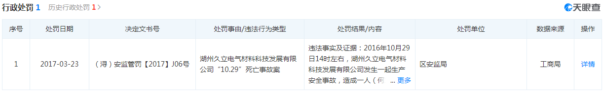 2017年-2020年1-3月大通新材向前五大供应商之一湖州久立电气材料科技发展有限公司采购金额分别为2.07亿元、3.68亿元、3.76亿元和0.75亿元。湖州久立电气材料科技发展有限公司"10.29"死亡事故案,2016年10月29日14时左右,湖州久立电气材料科技发展有限公司发生一起生产安全事故,造成一人(何东辉)死亡。