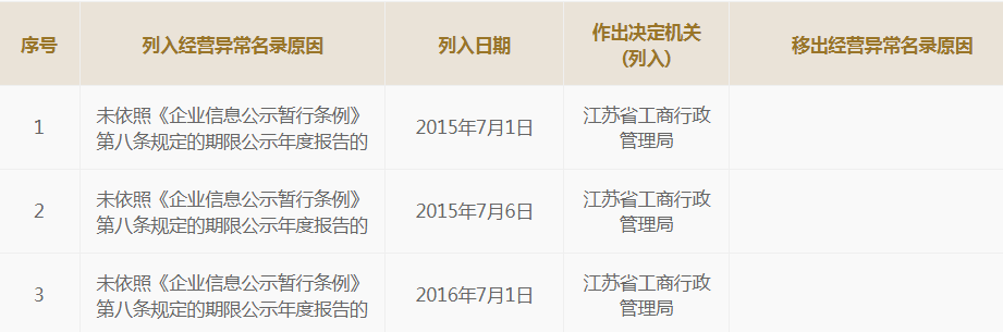 值得一提的是,清江投资因在2015年和2016年未按规定公示年度报告,被江苏省工商行政管理局三次列入经营异常名单。