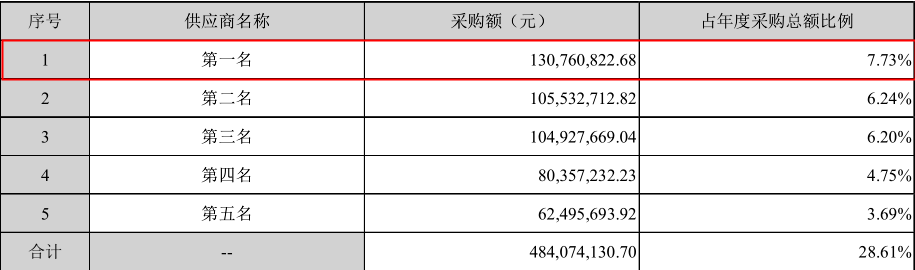虽然维信诺没有具体披露前五大供应商的名称,但从披露的采购数据来看,其第一大供应商的采购数据与盛剑环境还要少6,590.82万元,差距如此之大令人不解。