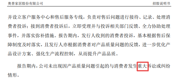 一般来说,阻燃部件不合格会造成严重后果,而且浴室取暖器是与水、电连在一起的。然而,在奥普家居的招股说明书,只提及未出现“重大诉讼和纠纷”。
