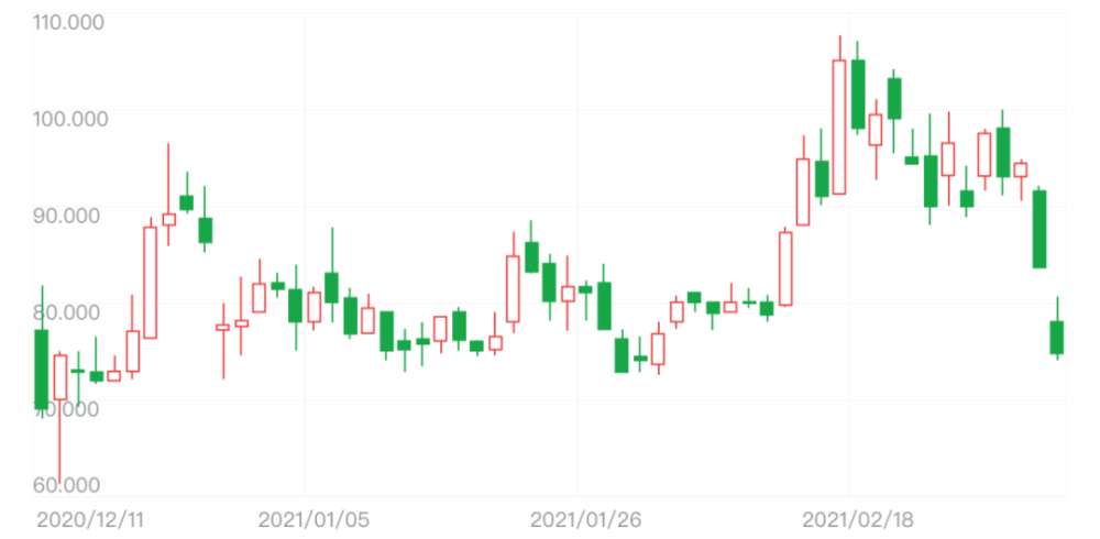 富途牛牛显示,泡泡玛特3月5日收盘价为74.7港元,低于上市当日开盘价,较最高价107.6港元下降30.6%。