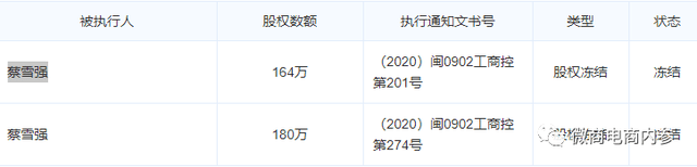 除了奢脉公司,李挺枝还同样投资了福建盛贸科技有限公司,而该公司的法定代表人蔡雪强已然沦为被执行人,其股权遭到冻结。